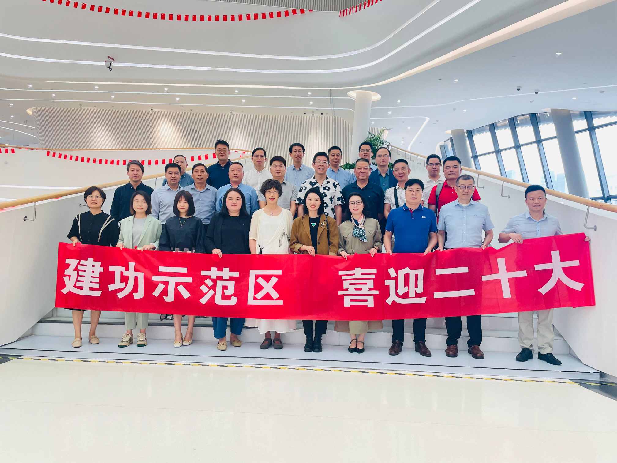 为喜迎党的二十大胜利召开,振奋广大经理人参与加快现代化滨海大都市建设的精神,2022年9月29日,甬商平台党支部在“宁波城市客厅”—宁波市城市展览馆举办了“建功示范区,喜迎二十大”主题活动。